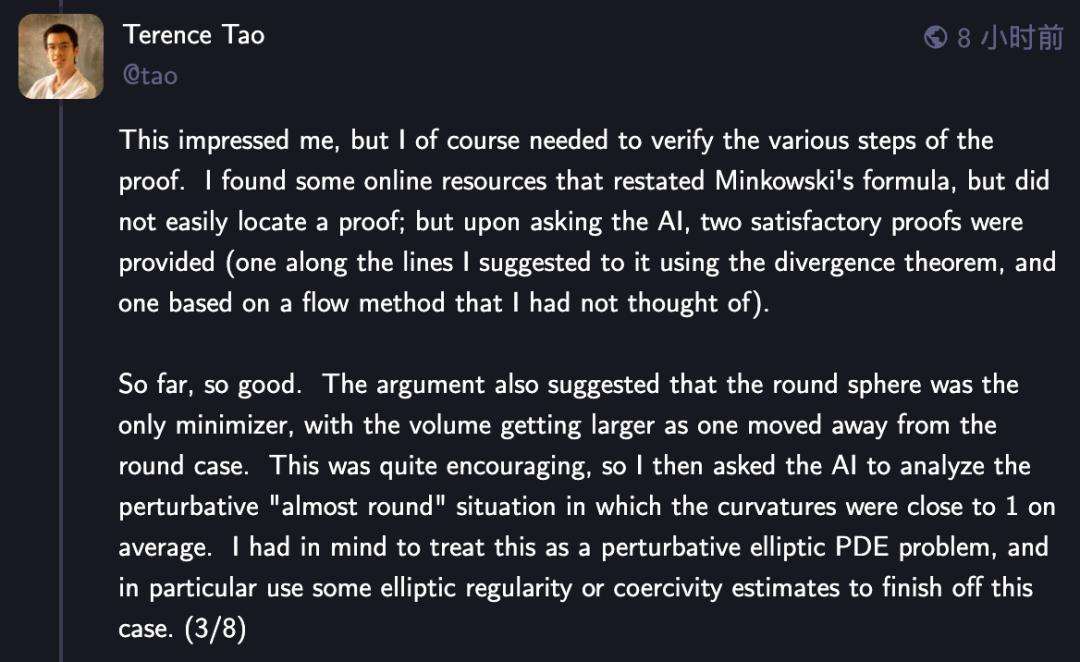 虽然解题告一段落,但陶哲轩的思考还在继续。