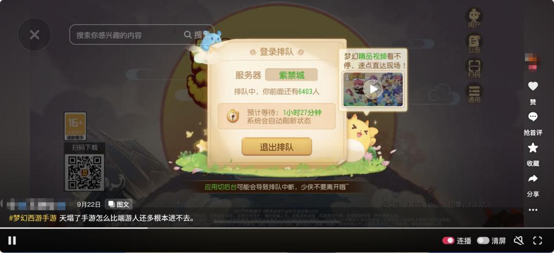 网易则主要靠几款MMO和《蛋仔派对》。《梦幻西游》仍是他们的常青树,在今年7月电脑版上线了畅玩服、手游版上线了轻享服之后,似乎又迎来了新的爆发期。国庆前几日,畅玩服、轻享服的新区就已经开始爆满。《蛋仔派对》则是他们新产品的代表,国庆假期尤其是黄金档。