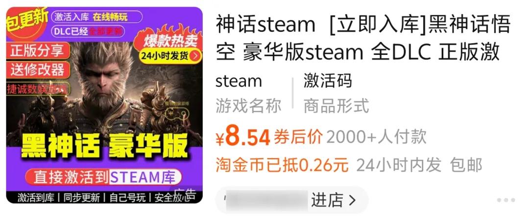黑神话也是只需 8 块多,一看销量 2000+;