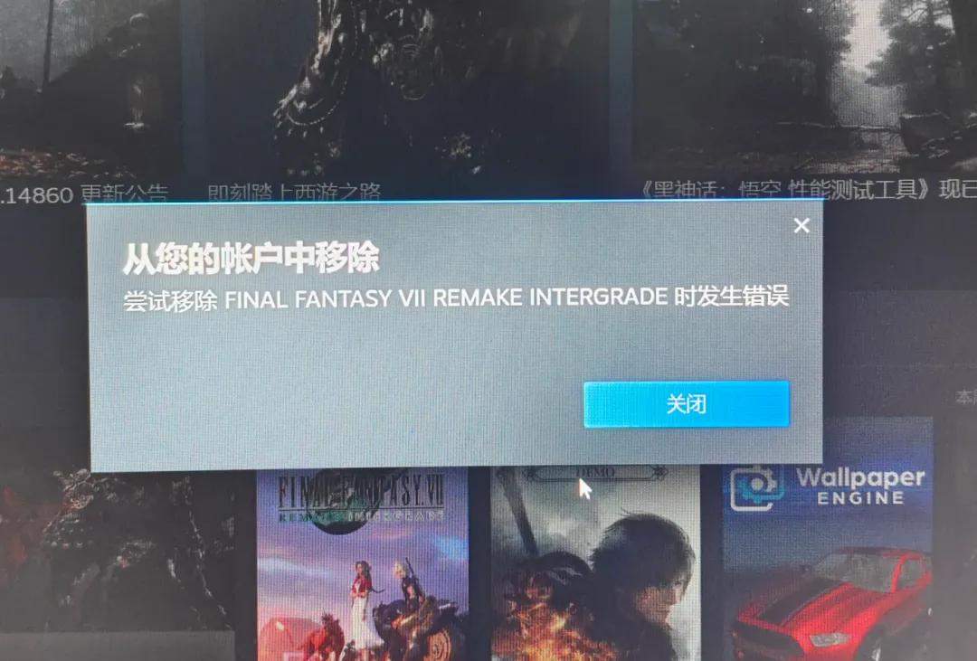 接着,一股微妙的感觉涌上心头,你想把游戏卸载、从库中移除,发现并没什么卵用,因为系统提示移除失败。