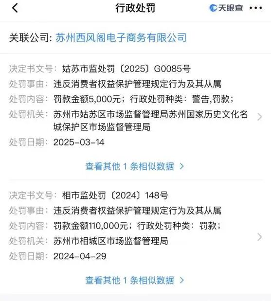 去年6月5日,苏州市阳澄湖大闸蟹行业协会发布公告,称“暂停苏州西风阁电子商务有限公司(即蟹太太)会员权利”。公告表示,苏州西风阁在2023年蟹季发货期间销售商品存在“缺斤短两”行为,近年来因“发布虚假广告”“销售食用农产品标注虚假生产者相关信息”等行为多次受到相关部门处罚,相关行为严重违反了协会章程和自律公约,“对整个行业造成了极其恶劣的影响”。