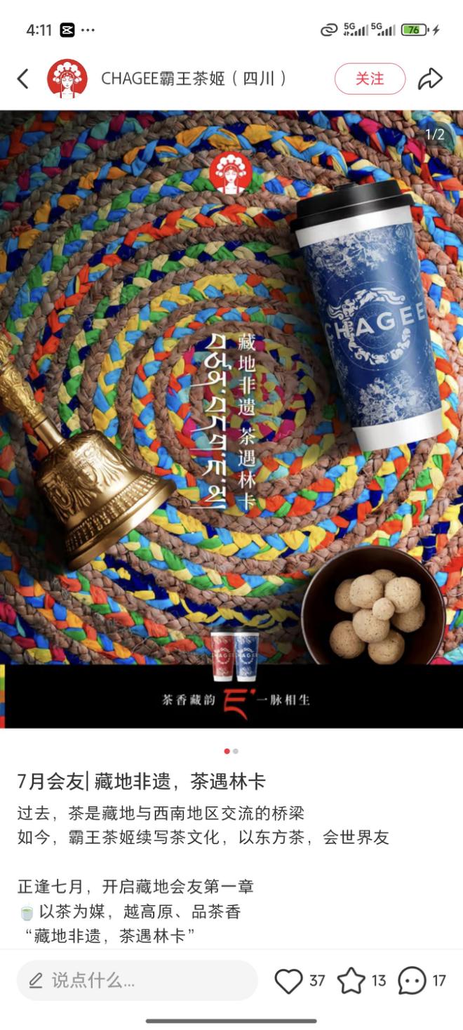 比如霸王别姬就在 2025 年七月林卡节期间,于成都打造了 “藏地非遗・茶遇林卡” 藏地文化限定主题活动,以藏地非遗元素为灵感进行门店布置与互动设计,区别于常规的季节性营销或单品上新。