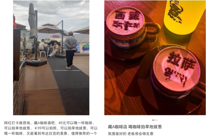 (1)采用 “日咖夜酒” 的复合业态。如藏 A 咖啡2024 年 8 月开业,定位为 “日咖夜酒” 的复合业态。通过一条以布达拉宫为背景的 “旱地拔葱” 视频在抖音获得 150 万 + 浏览量,成为现象级网红店,一周销量达 10 万杯。
