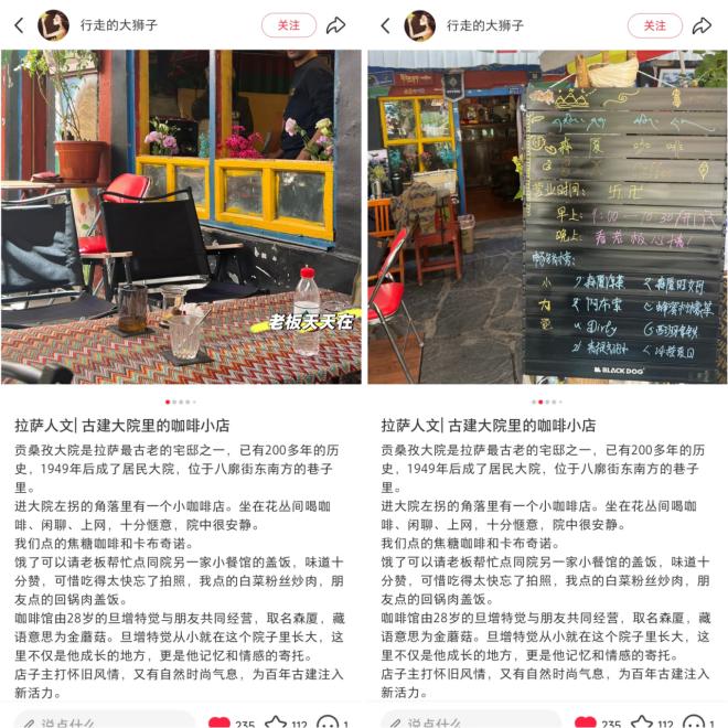 还有如院藏式咖啡馆以藏式风情与精美工艺品闻名,店内充满藏式元素,供应酥油拿铁与正宗酥油茶,搭配露天小院环境,成为当地网红打卡地。