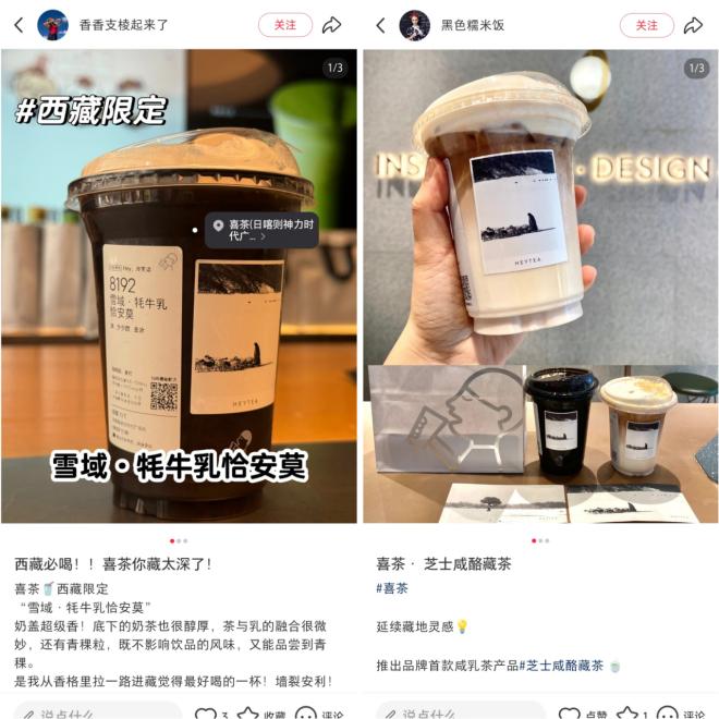 比如今年喜茶就开始大力押注藏式奶茶,连续几个月推出首款藏式茶饮。3 月份,推出了以嫣红茗茶 × 牦牛乳为基底,底部铺青稞,顶部撒有青稞蛋酥的 “雪域・牦牛乳恰安莫”,上线一周便卖爆,验证了牦牛乳藏式奶茶的高人气。