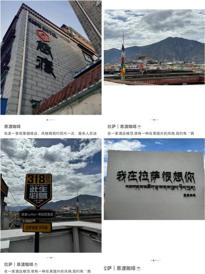 它的咖啡店位于拉萨八廓街慈渡酒店六楼,拥有拉萨数一数二的布达拉宫景观,是游客体验藏式文化的重要选择之一。
