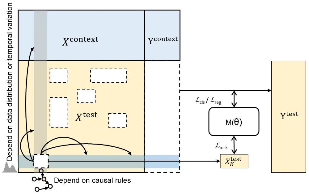 通用数据大模型(LDM)需要在各种应用场景的各种任务中通用,且具备无需进行训练的数据建模能力。因此需要对数据的联合分布进行建模,以提高模型的通用性、增强对特征交互模式的建模能力。为此,“极数”大模型在模型优化目标设计中加入了掩码重构机制:在训练过程中,通过对随机特征值进行掩码操作,模型将根据特征间的因果依赖关系,使用观测到的特征来重构缺失特征。为了更贴近真实场景中的缺失模式,“极数”大模型在三个维度上进行了样本维度掩码、特征维度掩码和语义维度掩码。通过引入掩码预测,模型可以学习到数据特征的联合分布,学习到更清晰且鲁棒的决策边界,提高对特征依赖关系的表示学习能力。