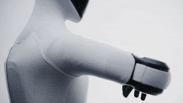 从外观设计上看,Figure 03做了大幅升级,尤其是全机采用了「柔性织物外层」,取代机械外壳。