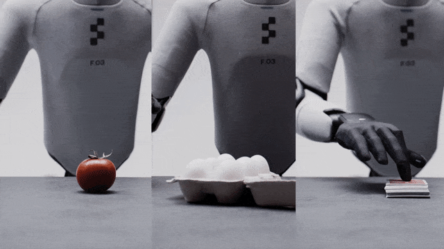 比如,Figure 03可以做到轻松拾取一颗鸡蛋而不将其捏碎,或是掀起一张扑克牌。
