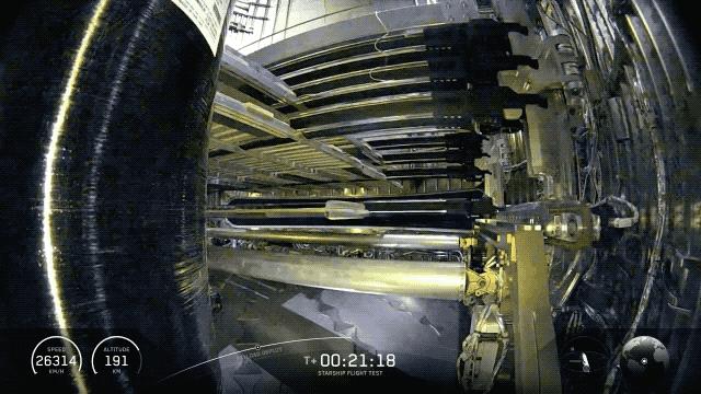 具体来说,当星舰 (上级飞船) 和助推器分离后,助推器需要返回地球并尝试着陆。第一步是进行姿态翻转,让发动机朝向正确方向,以便点火减速。