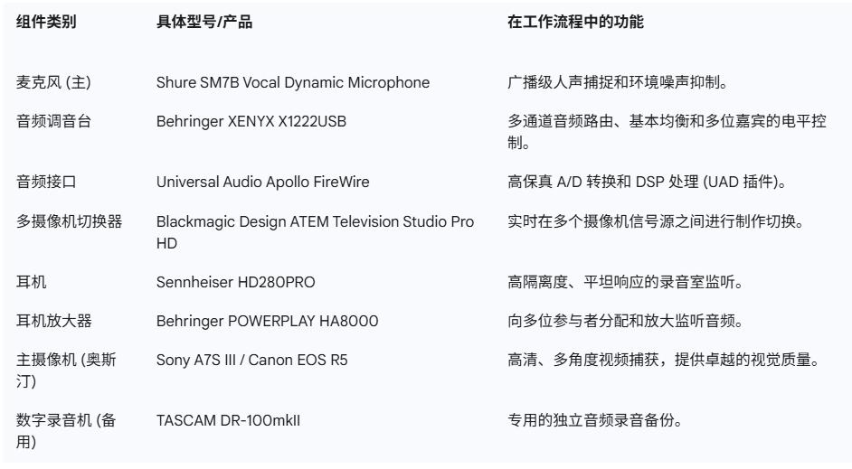 Joe Rogan Experience的设备清单(由Gemini生成,仅供参考)