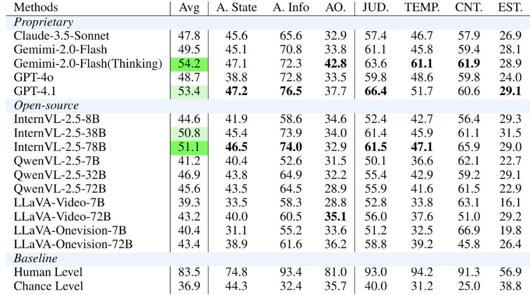 (2) 补考的结果表明:复杂线索条件下的空间推理能力不足与长期记忆检索机制薄弱是当前模型在在线时空理解任务中准确率受限的两大关键因素。