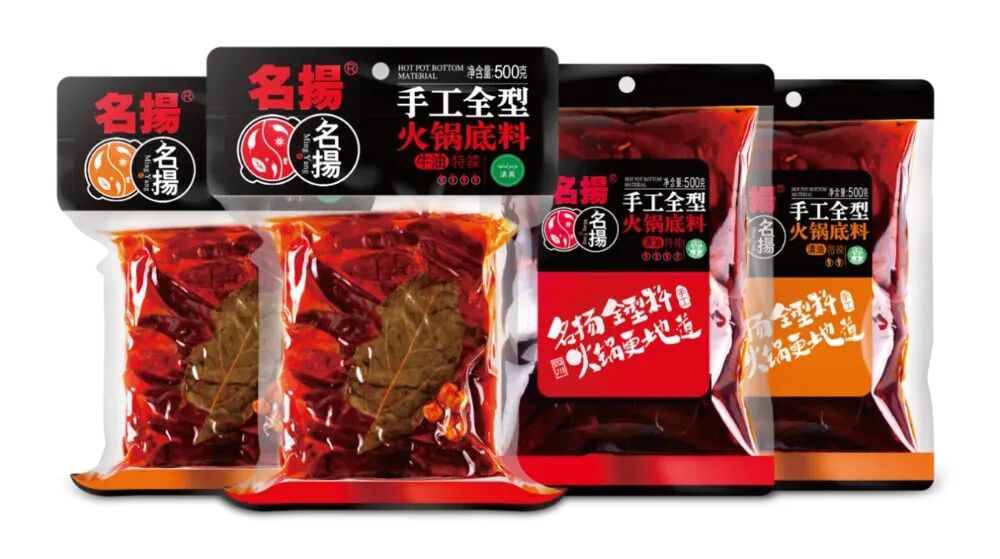夏科说:“过去火锅底料是不透明的包装,内装一个板料,但是名扬出来之后和其他品牌完全不一样,透明的包装,直接看到底料上面有辣椒、香叶、八角,把真材实料的概念直接展示给消费者,这是我们最先提出、实现的设想。”近年,番茄火锅底料流行起来,以往的底料打开是一包酱汁,无法强调“番茄”的真实性,而古格王朝帮助客户开发的新品,直接在底料包中加入“大块番茄”,解决底料品牌的消费者交付难题。