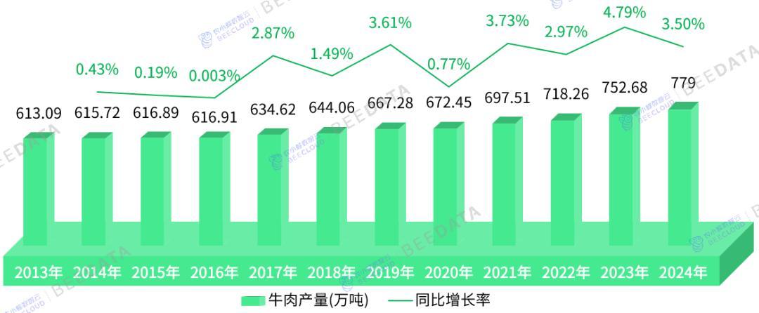 数据显示,2024年,中国牛肉产量779万吨,同比增长3.5%,牛肉消费量1070万吨,同比增长4.29%。国内市场高品质牛肉供不应求,供给端呈现韧性增长态势。