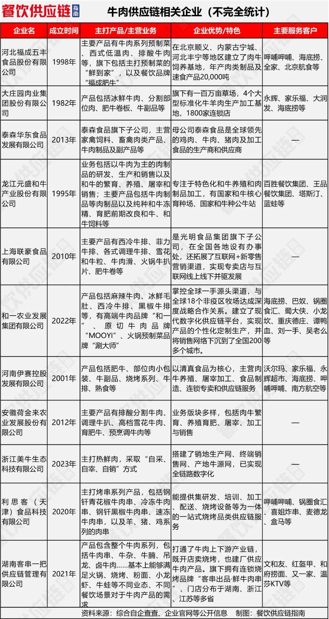 特别是在餐饮端,牛肉的应用场景不断扩大,一大批与牛肉相关的餐饮品类人气走高,还分化出了牛肋条自助、鲜切牛肉火锅、生烫牛肉米线等多个细分赛道。与此同时,不少下游端企业也在加速自建供应链、中央工厂,甚至向上游养殖端渗透。