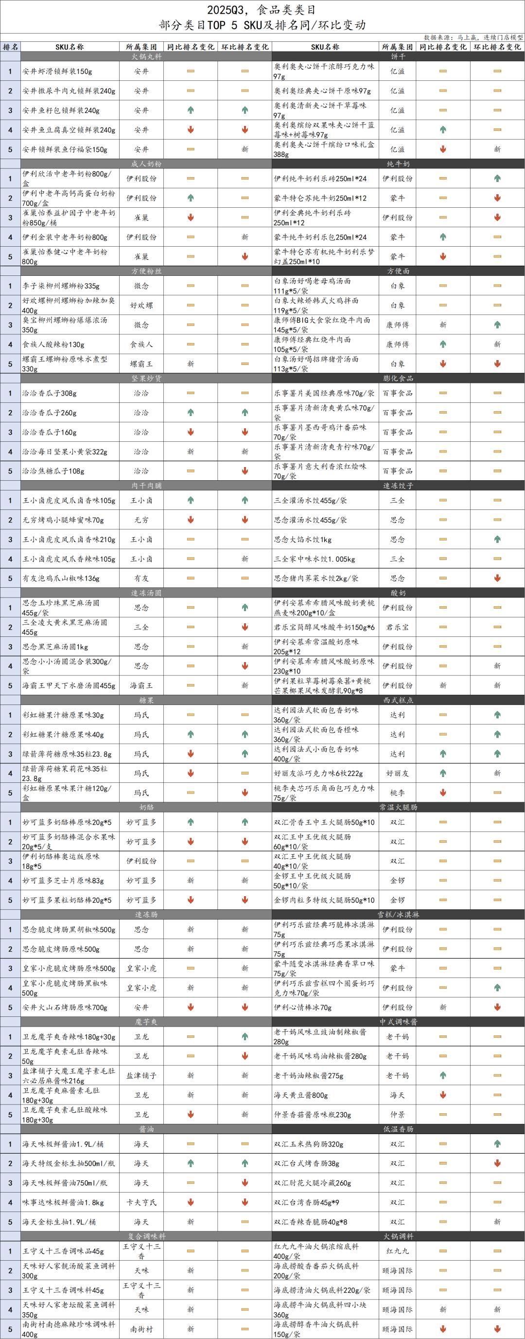 在本季度食品类类目的Top SKU变动上,几个点的变化值得关注: