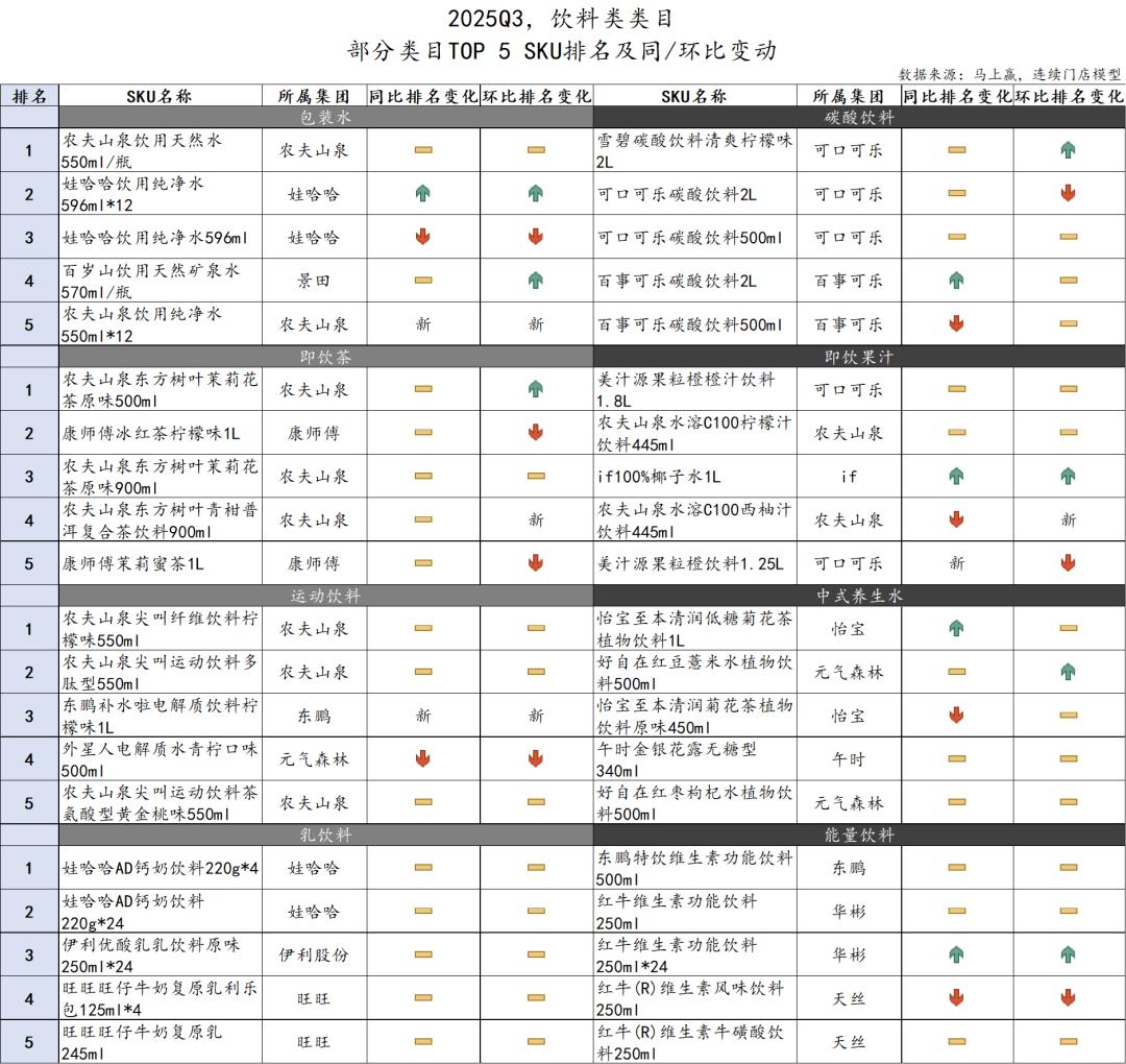 在本季度饮料类类目的Top SKU变动上,几个点的变化值得关注:
