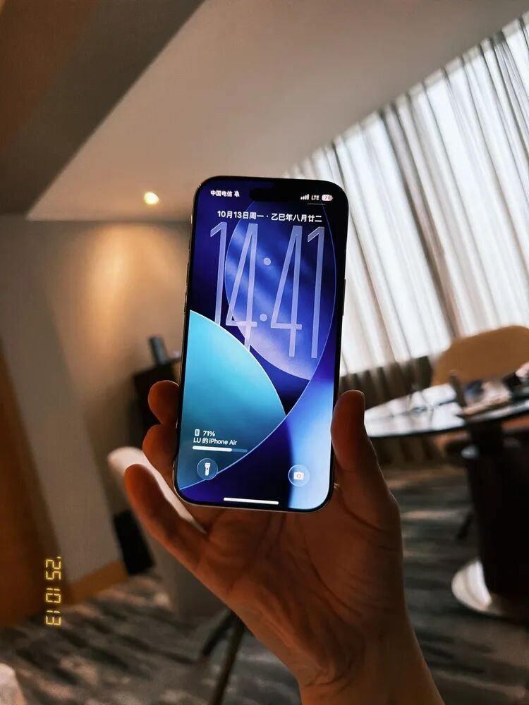摄像系统由前置 1800 万像素摄像头和后置 4800 万像素主摄组成,后摄等效焦距 26 毫米,光圈为 F/1.6。iPhone Air 还集成了苹果自研的 N1 芯片与 C1X 调制解调器,全面支持 Wi-Fi 7、蓝牙 6.0 以及 Thread 网络协议,进一步提升了连接性能与智能家居协同能力。