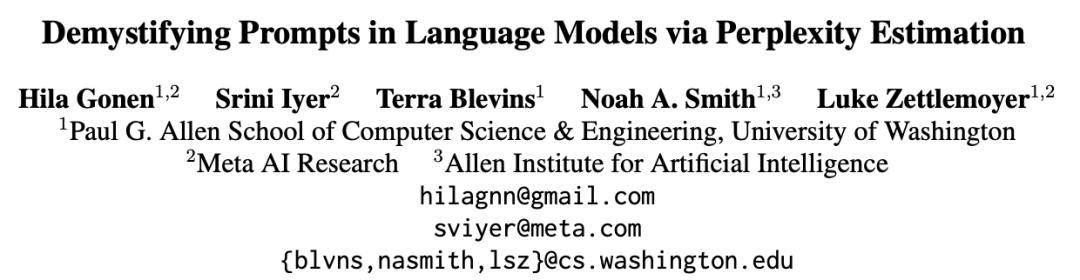 一个可能的研究方向,是基于华盛顿大学Gonen等人提出的困惑度概念。