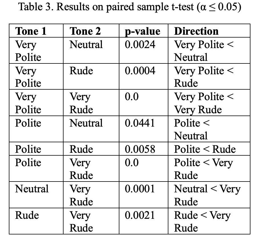 中性语气的表现优于礼貌语气,但劣于非常粗鲁的语气。