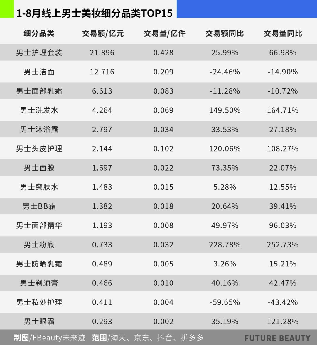 那么在今年1-8月,男士化妆品中哪些迎来了爆发性增长?