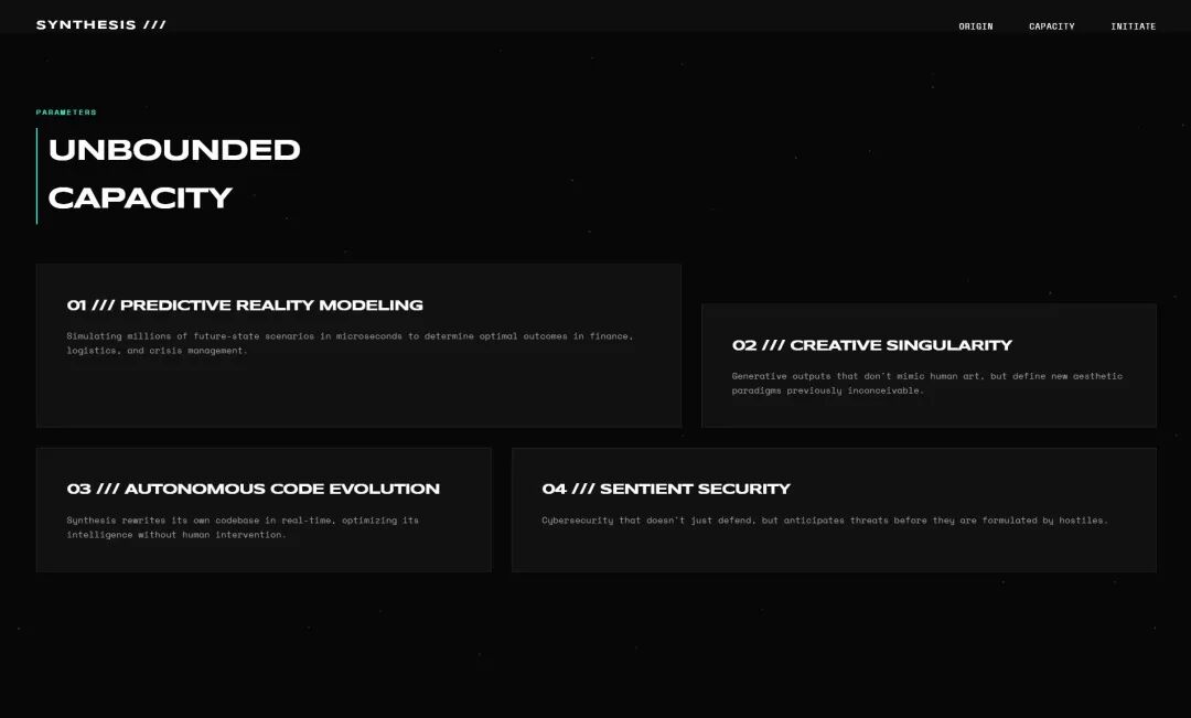 就像这个关于大语言模型的网站,输入的提示词仅仅是「为关于 LLMs 的网站编写完整的 HTML、CSS 和 JavaScript,以创建一个令人惊叹、大胆、富有创意和独特的着陆页。它应该看起来像是世界顶尖的网页设计公司从头开始构建的。」