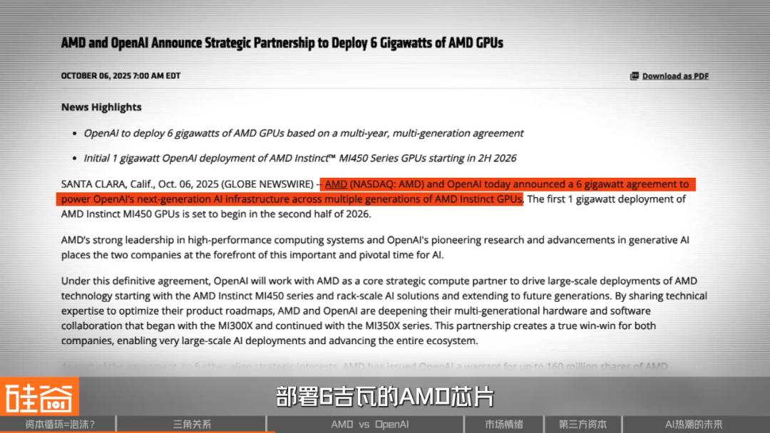 AMD的CEO Lisa Su也在采访中表示“这笔交易对AMD来说是赢,对OpenAI来说也是赢,对我们的股东同样是赢。”