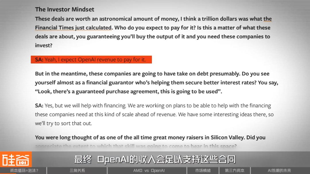 如果这样的客户(OpenAI)不行了,垮掉了的话,那就相当于AMD自己损失掉了10%的股份,这是一个很沉重的代价。