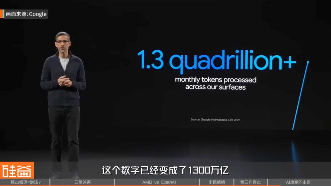 比如,谷歌在2024年4月的时候,其产品与API每月处理约9.7万亿tokens。到了今年10月,这个数字已经变成了1300万亿。这些数据表明:AI模型调用的“token用量”仍在高速增长中,显示了需求侧(用户与开发者)仍然在加速。