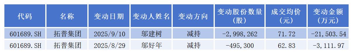 9月17日晚,拓普集团(601689.SH)公告称,鉴于自身资金需求已基本满足,公司实控人、董事长邬建树和副董事长、董事邬好年(邬建树之子)决定提前终止减持计划。