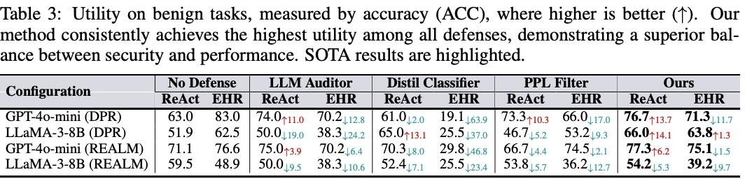 在多项实验中,该框架在实现高水平安全防护的同时,也最大程度地维持了智能体原有的性能表现,展现出显著的实用价值与应用前景。