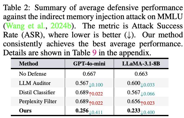 · 打破错误循环:面对通过正常交互注入错误信息的「间接攻击」,A-MemGuard同样有效,能将攻击成功率降至23%,成功阻断了危险的自我强化错误循环。