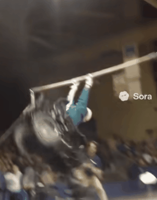 “遵循物理定律”是本次最大的宣传点,相比过去AI生成视频的“反物理&反人类”风格,Sora-2不仅能高度模拟现实中的物理效果,还能将现实拍摄素材丝滑“注入”到视频生成中。