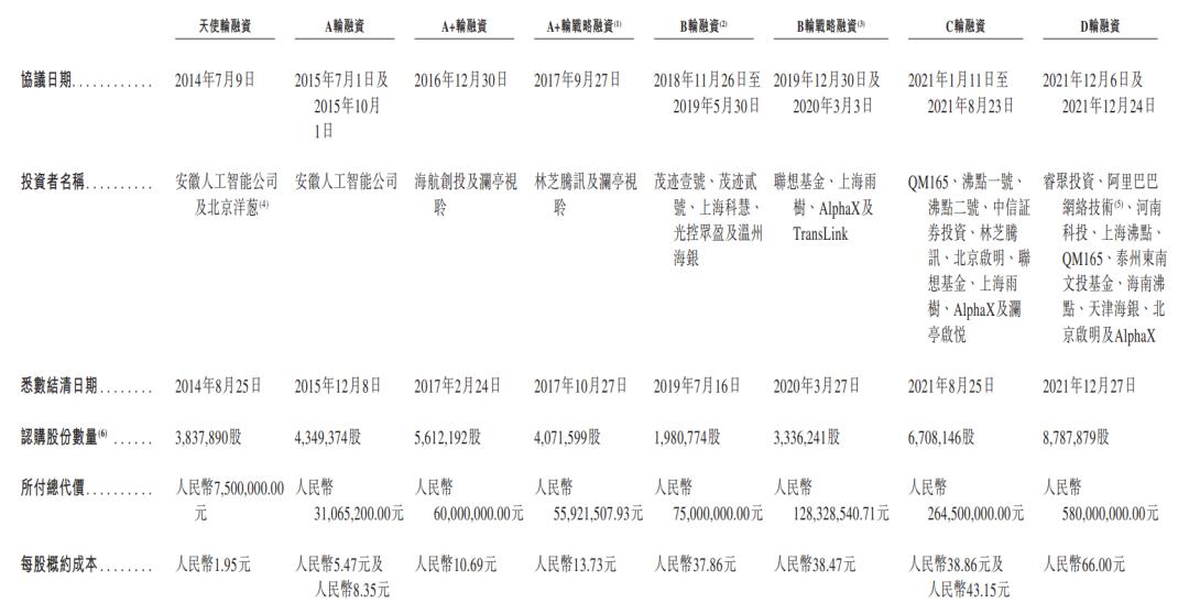 其中,对公司加持多轮的沸点资本持股10.70%;安徽人工智能公司持股9.57%;腾讯持股9.09%;启明创投旗下QM165与北京启明合计持股约5.39%;联想基金持股4.22%;阿里巴巴旗下杭州灏月持股2.94%。