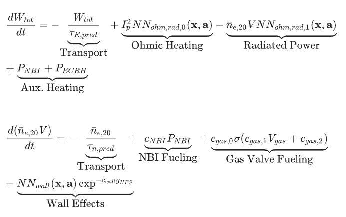 该模型的骨架是零维物理方程,主要描述了等离子体的能量平衡和粒子平衡。但部分关键参量(如约束时间、辐射损失等)难以用第一性原理精确建模,因此研究团队在这些核心部位嵌入了「神经网络」,让模型能够从实验数据中学习这些难以模拟的物理效应。如同一辆拥有标准车辆底盘的自动驾驶汽车,但其「驾驶经验」是通过真实路况数据训练而来的。