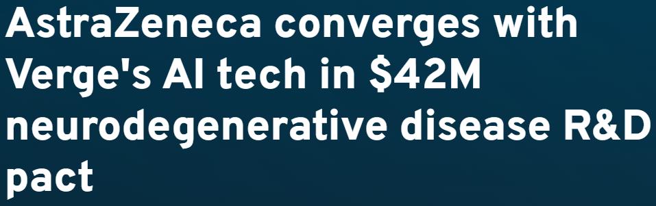 牵手阿斯利康(AstraZeneca): 继礼来之后,另一家全球顶级药企阿斯利康(通过其子公司Alexion)也向Verge抛来了橄榄枝。双方达成合作,利用Verge的AI平台寻找针对罕见神经退行性疾病和神经肌肉疾病的新靶点。