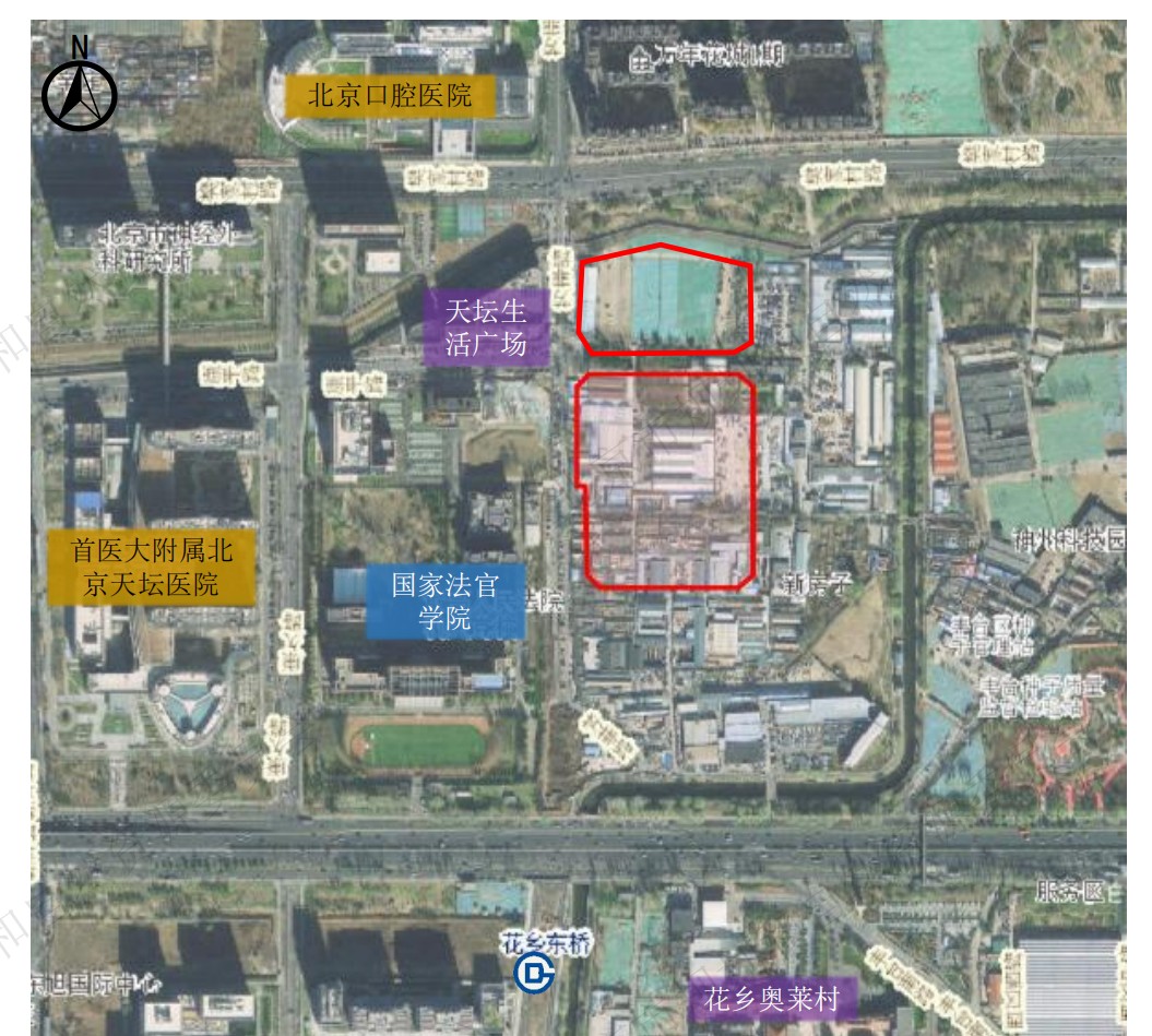 地块所在版块是丰台区较为成熟区域,地块往西是天坛医院,北边是北京口腔医院;往南不远是花乡奥莱村,丰科万达、资和信百货、鑫嘉汇购物中心等商业也都在3公里范围内。