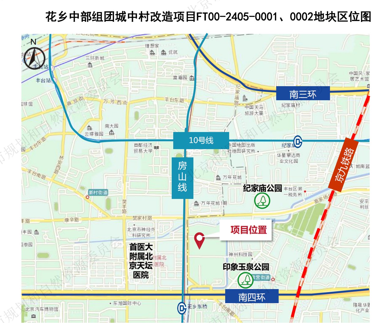 这宗FT00-2405-0001、0002地块,位于丰台区玉泉营街道,处在南三环和南四环之间,邻近地铁房山线花乡东桥站(约300米)、地铁10号线与房山线换乘首经贸站(约700米)。该地块为R2二类居住用地,用地面积约7.16万平米,建筑规模约17.92万平米。