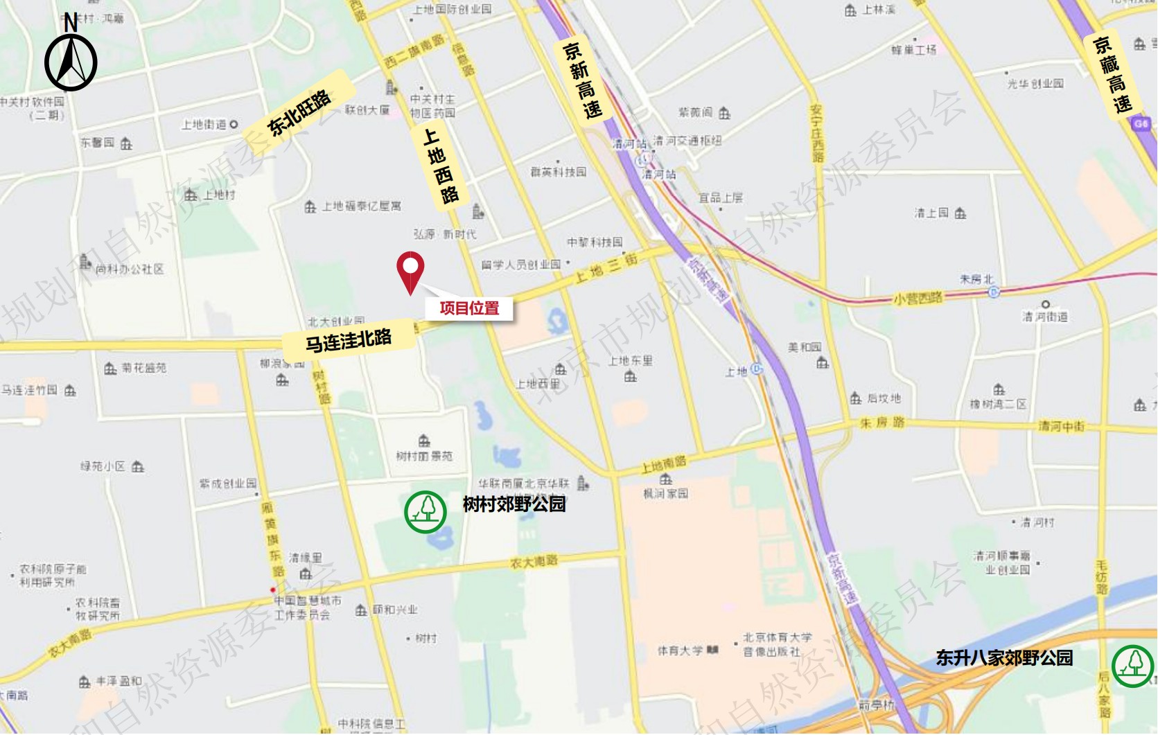 该地块处在上地西路和马连洼北路交汇处,京新高速的西侧,紧挨北大创业园,距离13号线和昌平线换乘站—清河站约1公里,距离另一地铁站—上地站约1.5公里。北侧约1公里处即是有名的中关村软件园,腾讯、联想等大厂遍布。