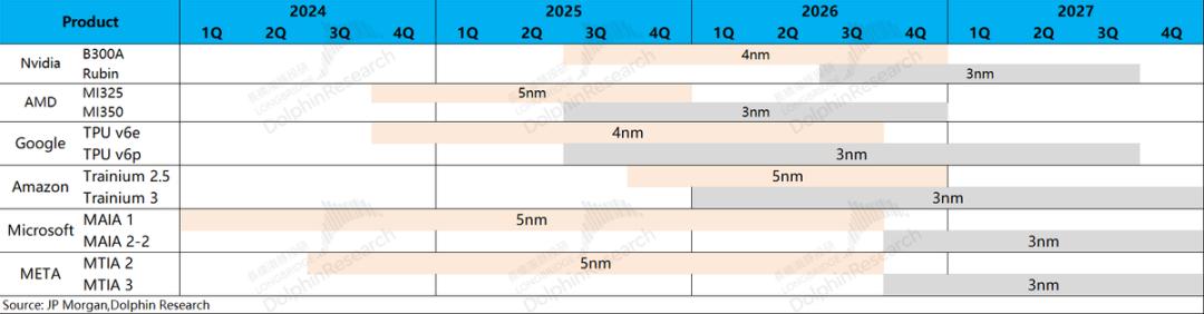 随着公司将3nm的手机芯片等产品陆续转移至2nm平台,当前的AI芯片也将从5nm迁移至3nm。随着公司制程结构进一步向更先进节点迁移,一方面能带动公司产品均价继续上行,另一方面也能扩大与竞争对手的优势。