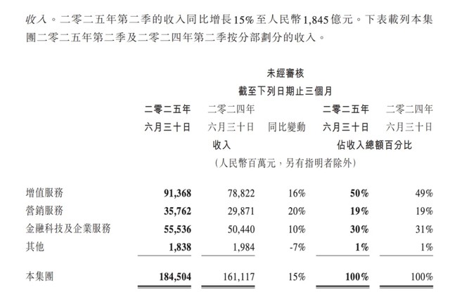 AI给腾讯带来的甘甜甚至都不用弯弯绕绕的计算。2025年二季度,腾讯营收同比增长15%,经营利润增长18%。马化腾在财报会上开门见山:「这得益于我们在人工智能方面的投入以及从中获益。」其中,腾讯广告收入358亿,同比增长20%;视频号、小程序和微信搜索广告收入分别增长约50%、50%、60%。