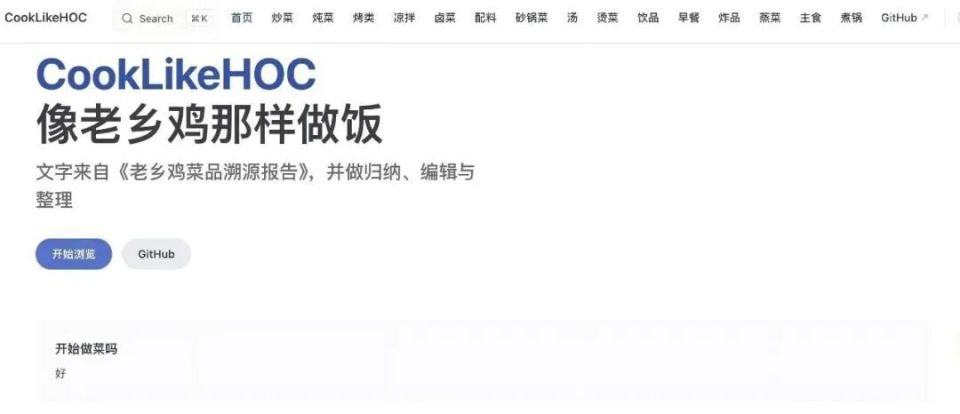 今年9月,在 GitHub 上,一个基于《老乡鸡菜品溯源报告》编写的名为「CookLikeHOC」的开源项目意外出圈。