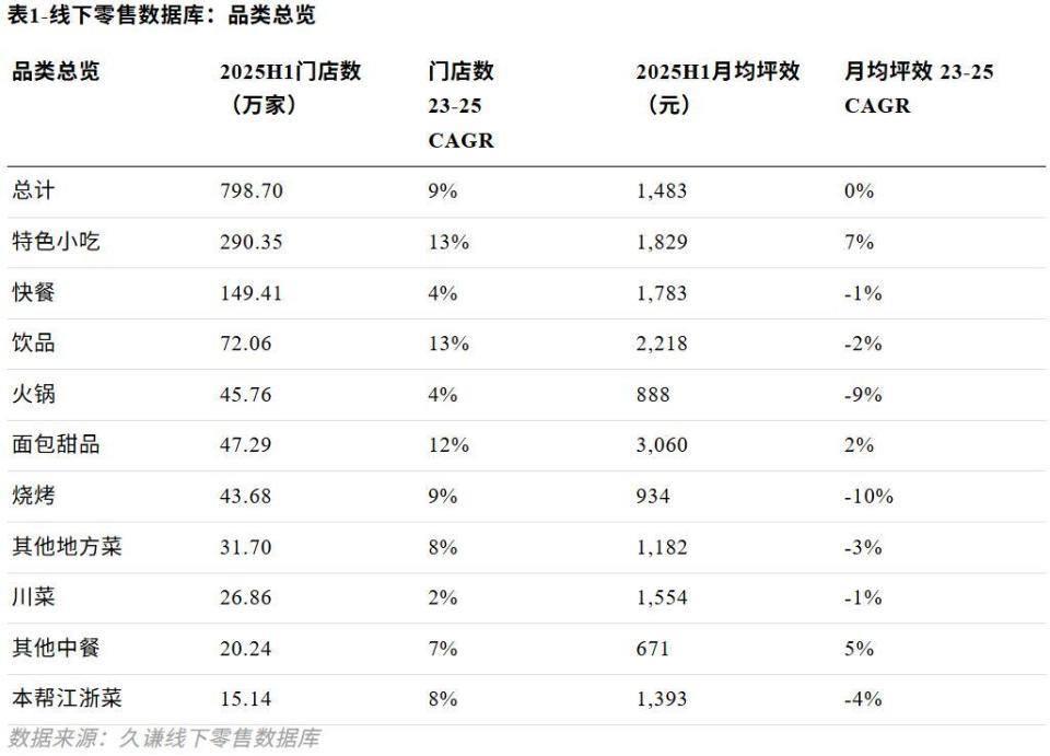 久谦机构的数据也显示,从2023年到2025年上半年,中国餐饮门店总数从674.41万家上升至798.7万家。